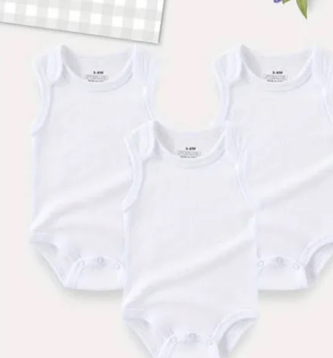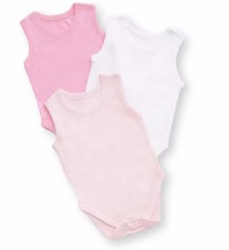 Model: George White plain sleeveless bodysuits 0-3 months