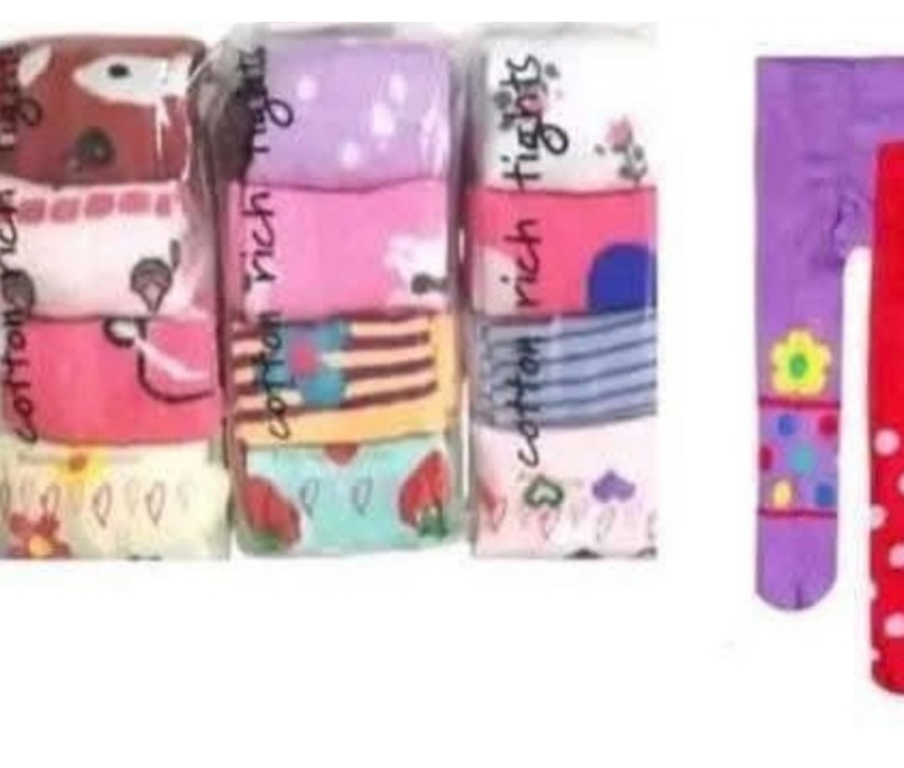 - Dress your baby girl up with this quality Cotton Rich Tights (pop socks). Its comes in attractive colours (Multicolour). Made with soft cotton material that is heat-free. Gives comfort and elegance to your baby